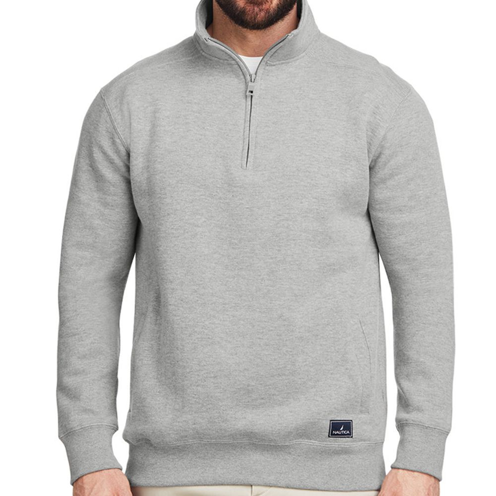 Discover the perfect combination of comfort and style with the Nautica Anchor Quarter-Zip Pullover. Made from a soft and durable blend of cotton and polyester mercerized fleece, this pullover promises cozy wear. The stand collar brings an air of sophistication, complemented by striped neck tape for added visual interest. Featuring ribbed cuffs and hem, it provides a secure fit and extra warmth. Simply add your logo and let this quarter-zip do the rest!